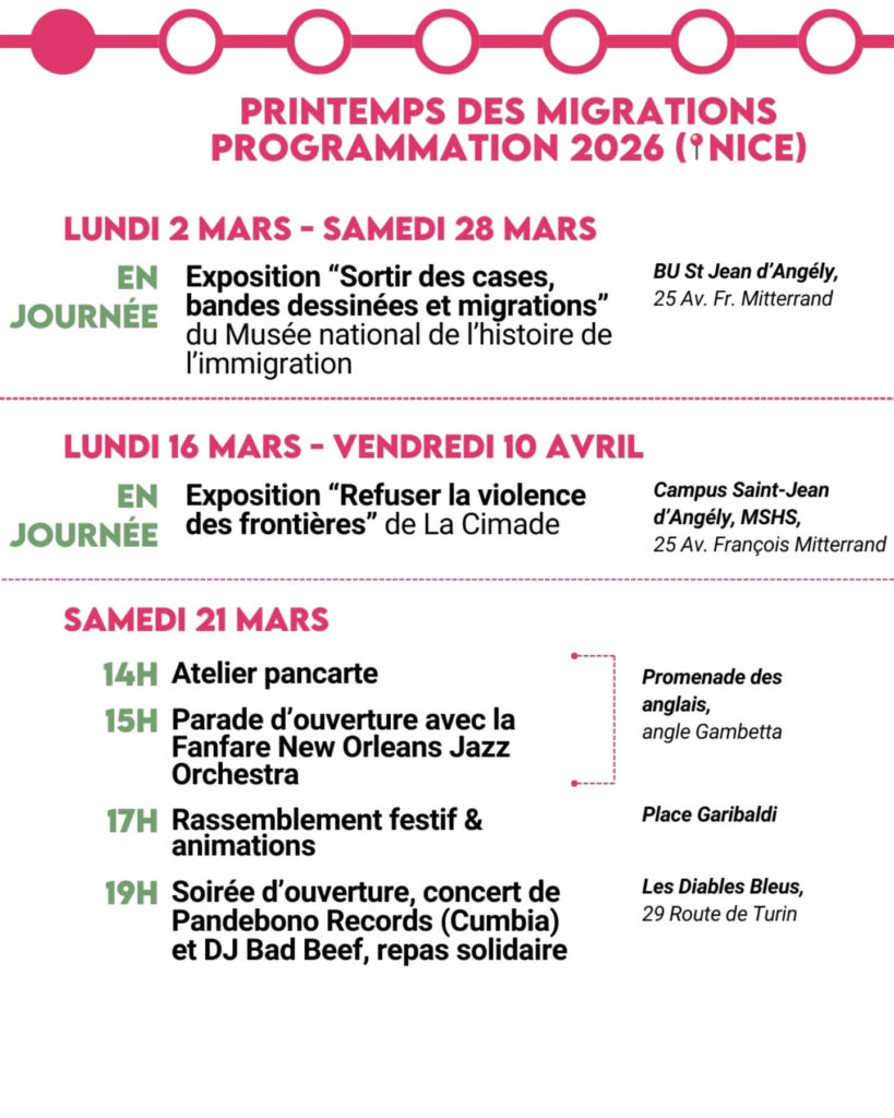 Le Printemps de Migrations revient à Nice pour sa 4ème édition. Etrange hasard du calendrier, collision improbable (ou pas) avec l’élection d’Eric Ciotti à la Mairie. Encore une fois, belle programmation – la migration dans toute sa diversité.